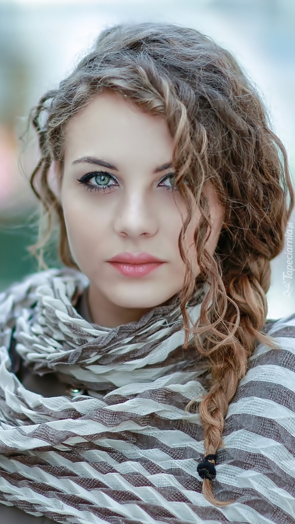 Edytor tapety: Kobieta z warkoczem otulona szalem