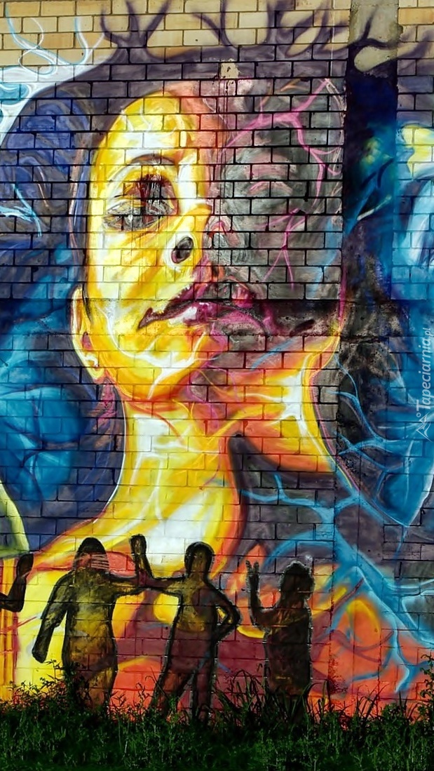 Edytor tapety: Kobieca twarz w graffiti na murze