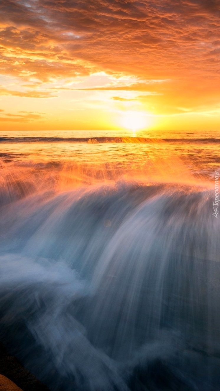 Edytor tapety: Fale morza o zachodzie słońca
