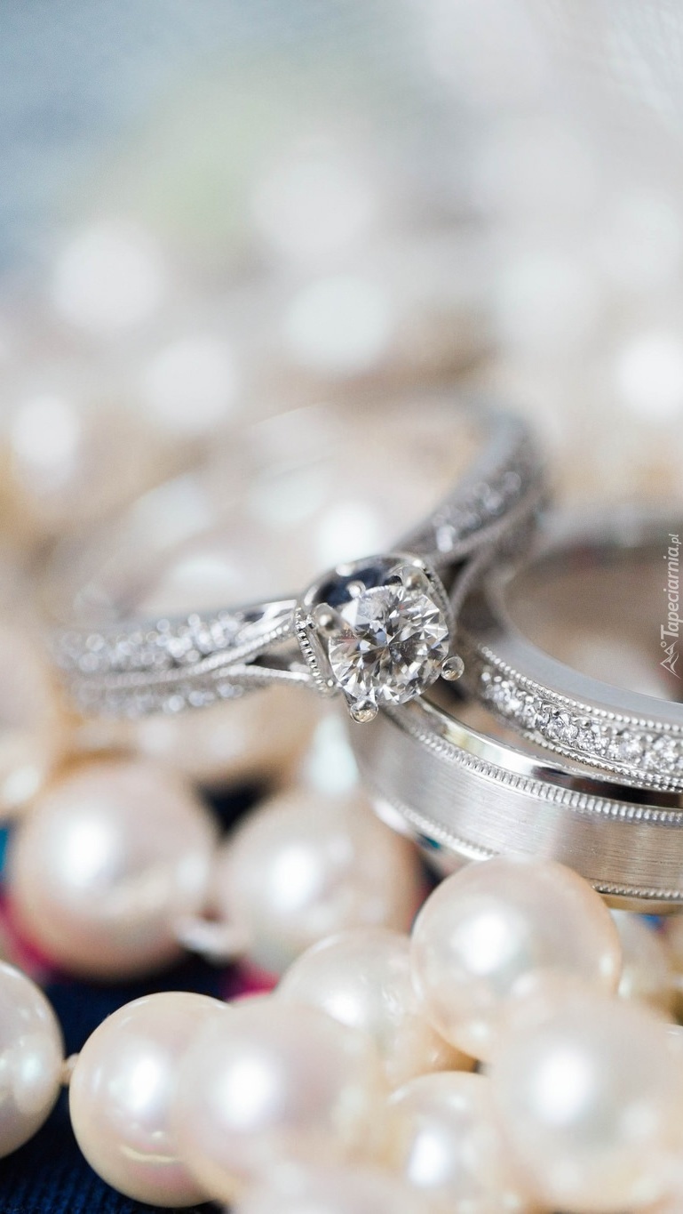 Edytor tapety: Pierścionek położony na obrączkach i perłach