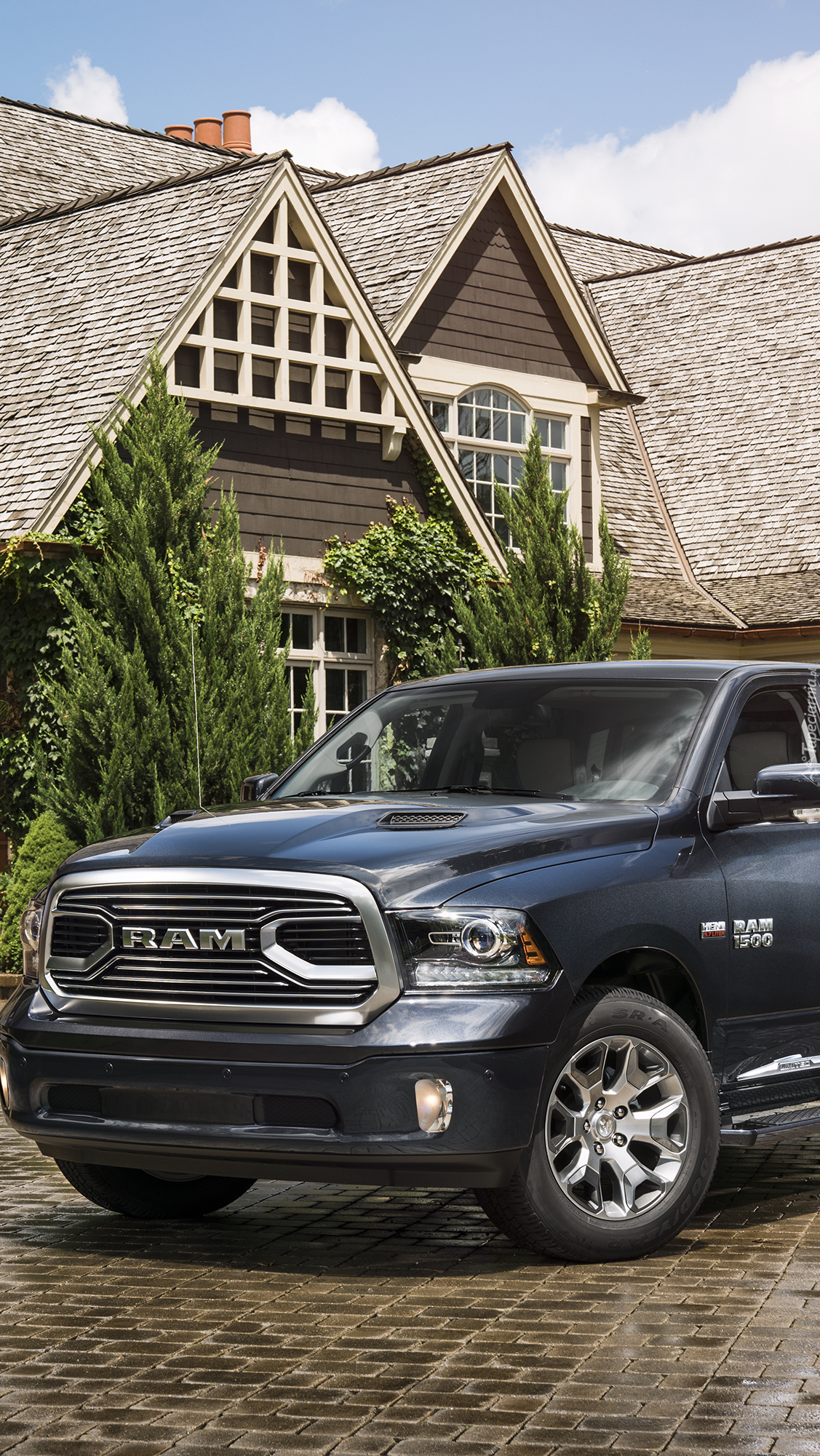 Edytor tapety: Przód czarnego Dodgea Ram 1500