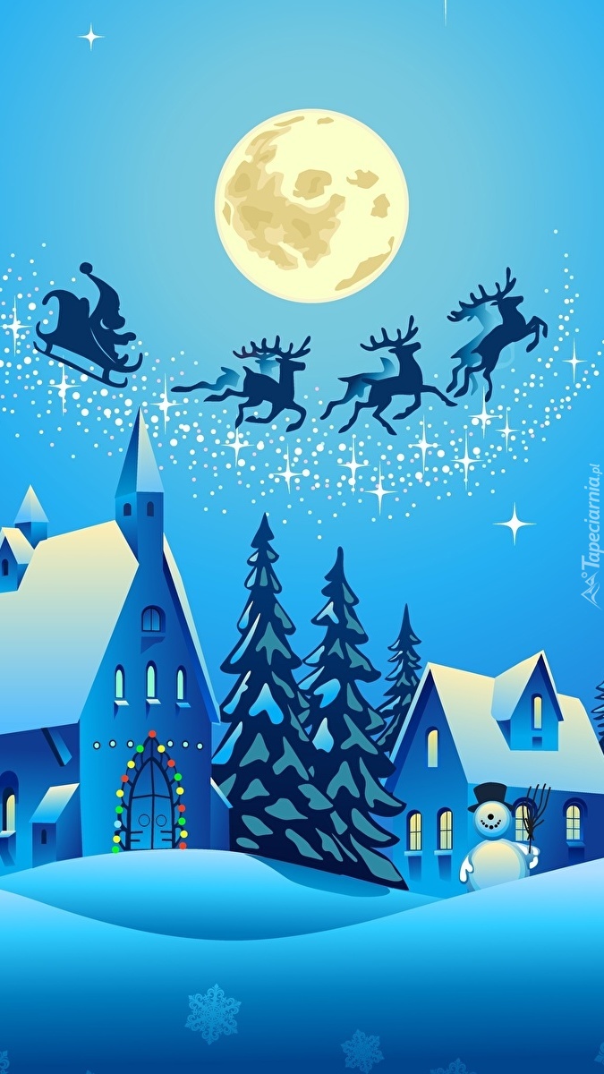 Edytor tapety: Zaprzęg Mikołaja przelatuje nad miastem nocą