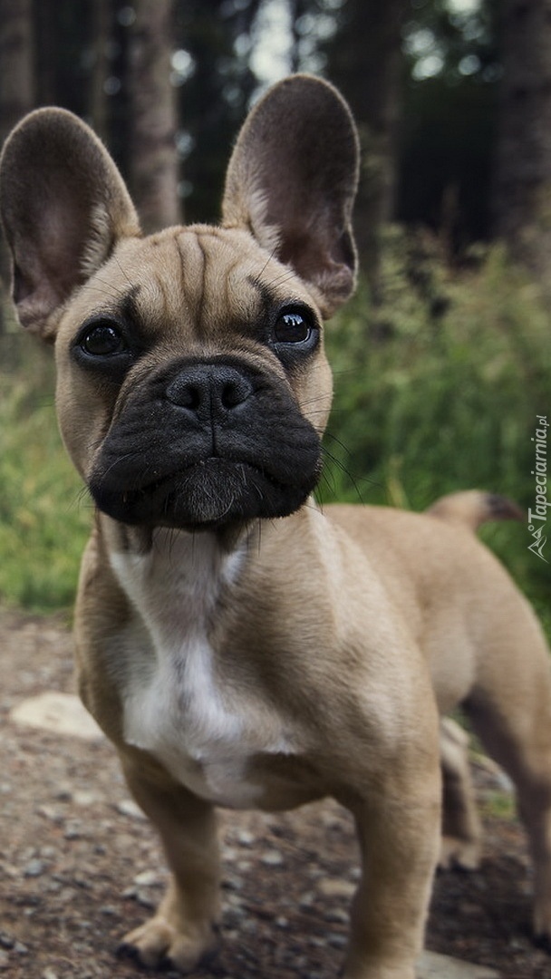 Edytor tapety: Buldog na leśnej drodze