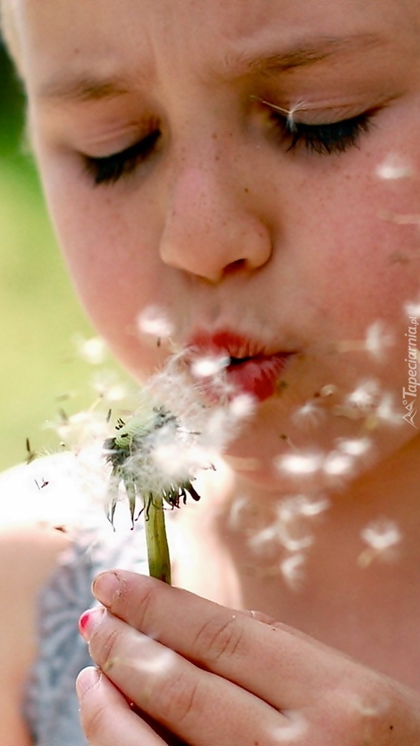 Edytor tapety: Dziewczynka z dmuchawcem w dłoni