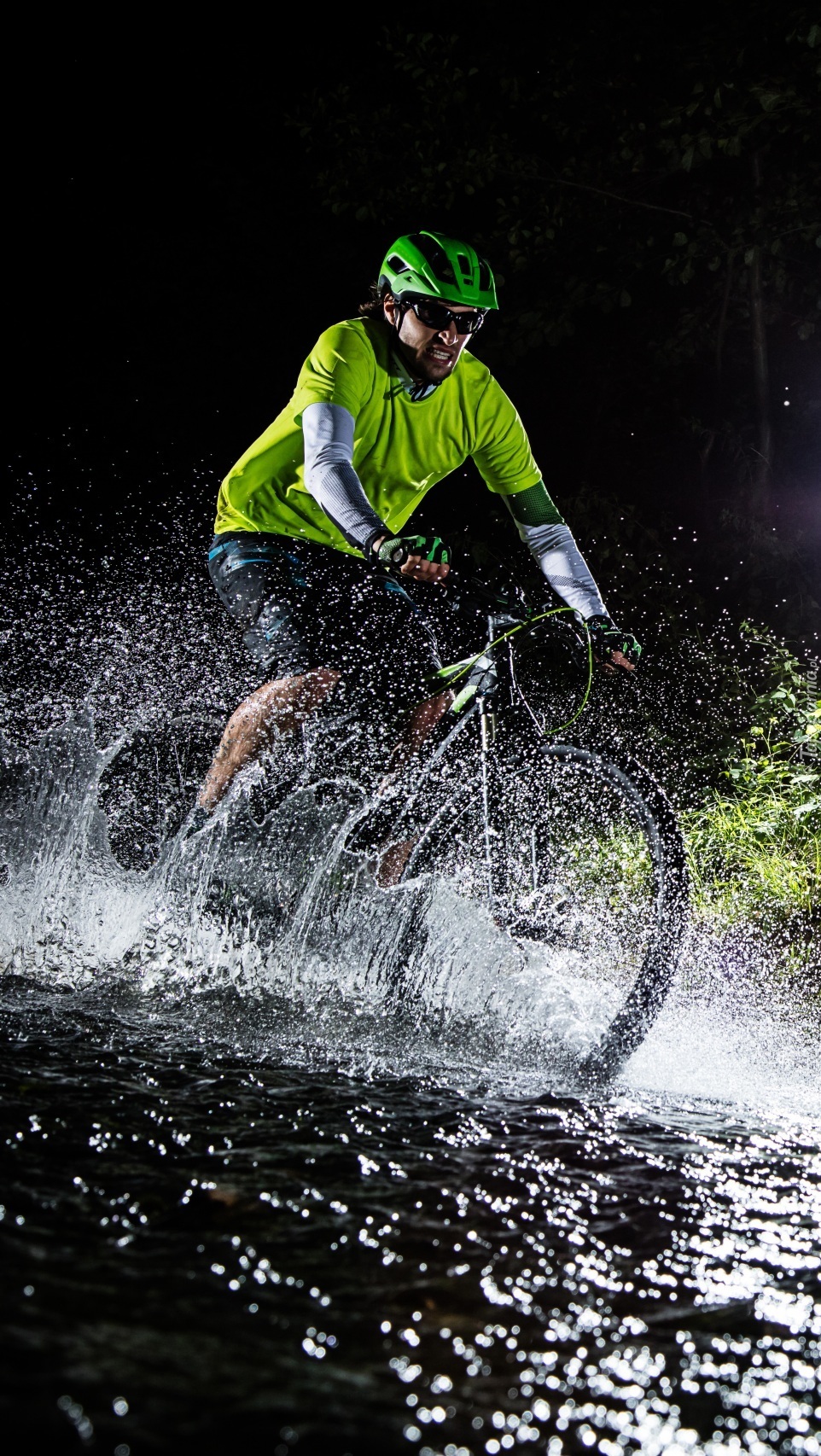 Edytor tapety: Kolarz pokonujący przeszkodę wodną