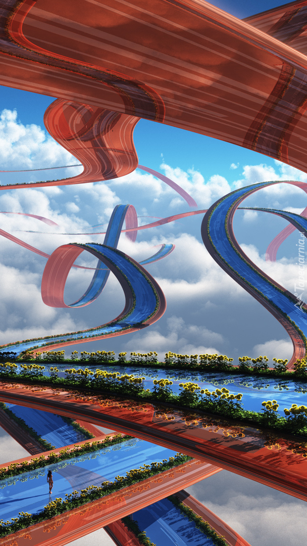 Edytor tapety: Dziewczyna idąca drogą w chmurach