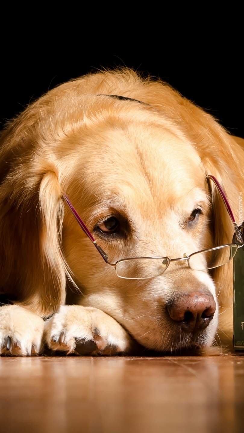 Edytor tapety: Golden retriever w okularach