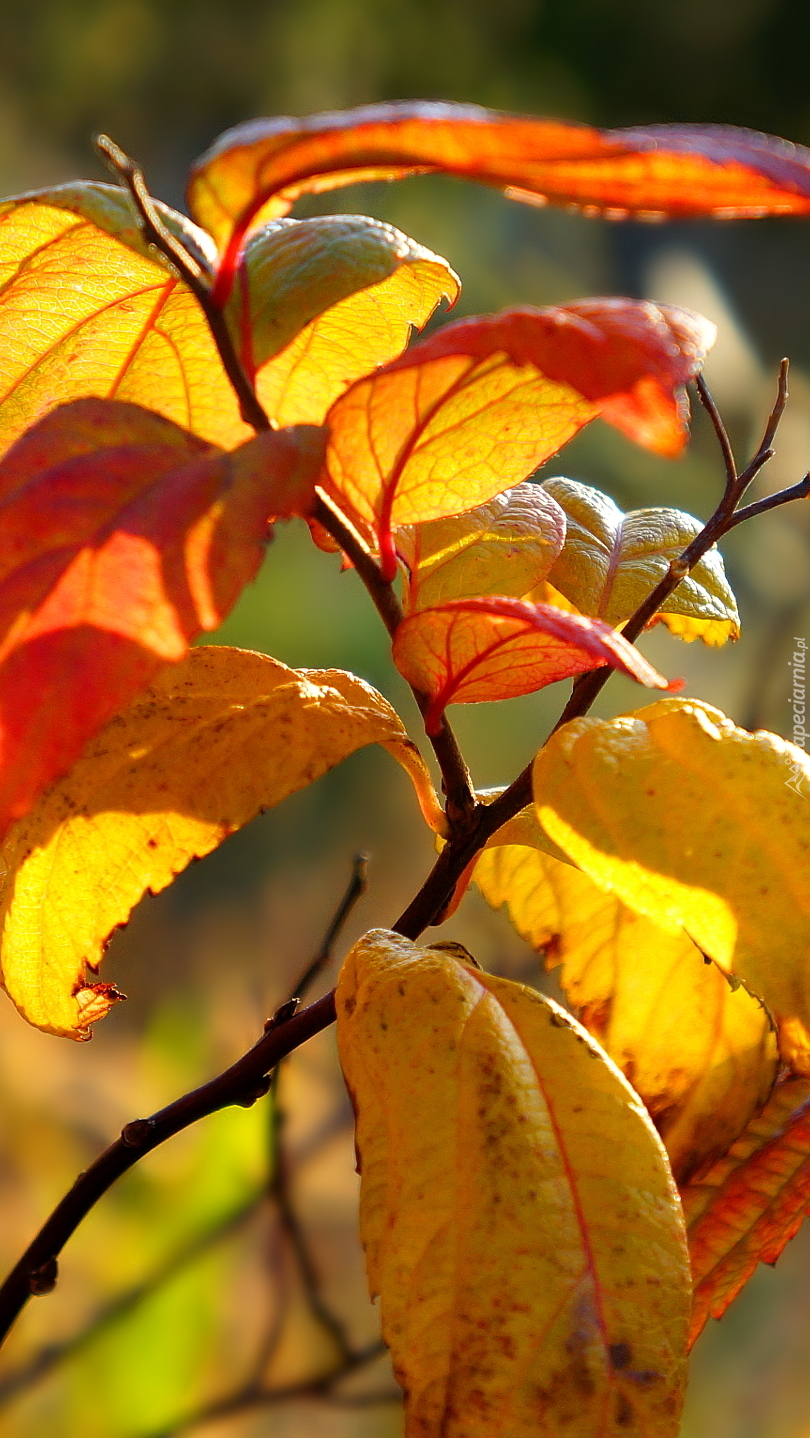 Edytor tapety: Pożółkłe jesienne liście na gałązkach