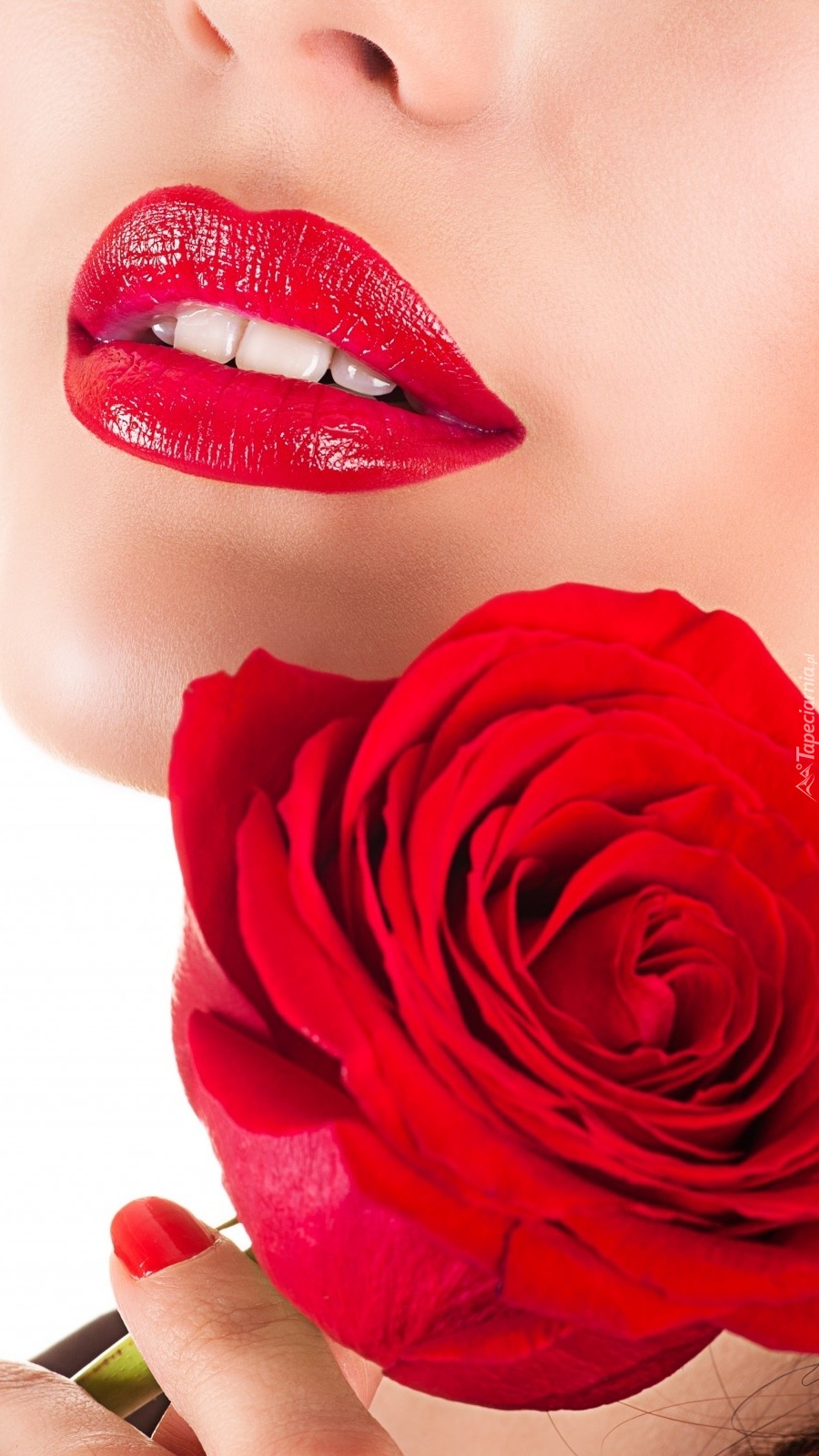 Edytor tapety: Róża przy kobiecej twarzy