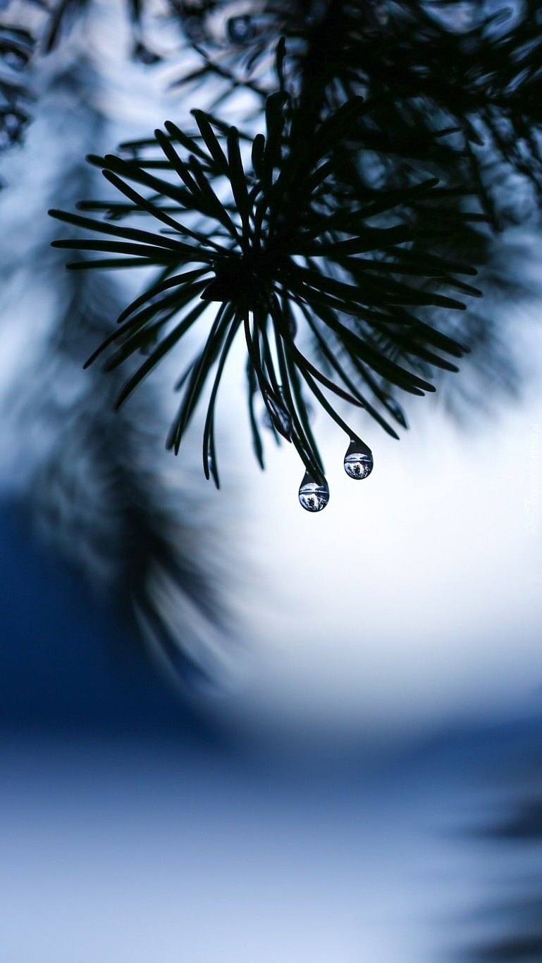 Edytor tapety: Krople wody na gałązce sosny