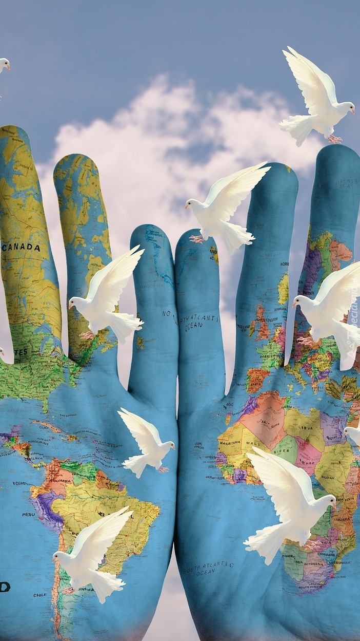 Edytor tapety: Kontynenty namalowane na dłoniach