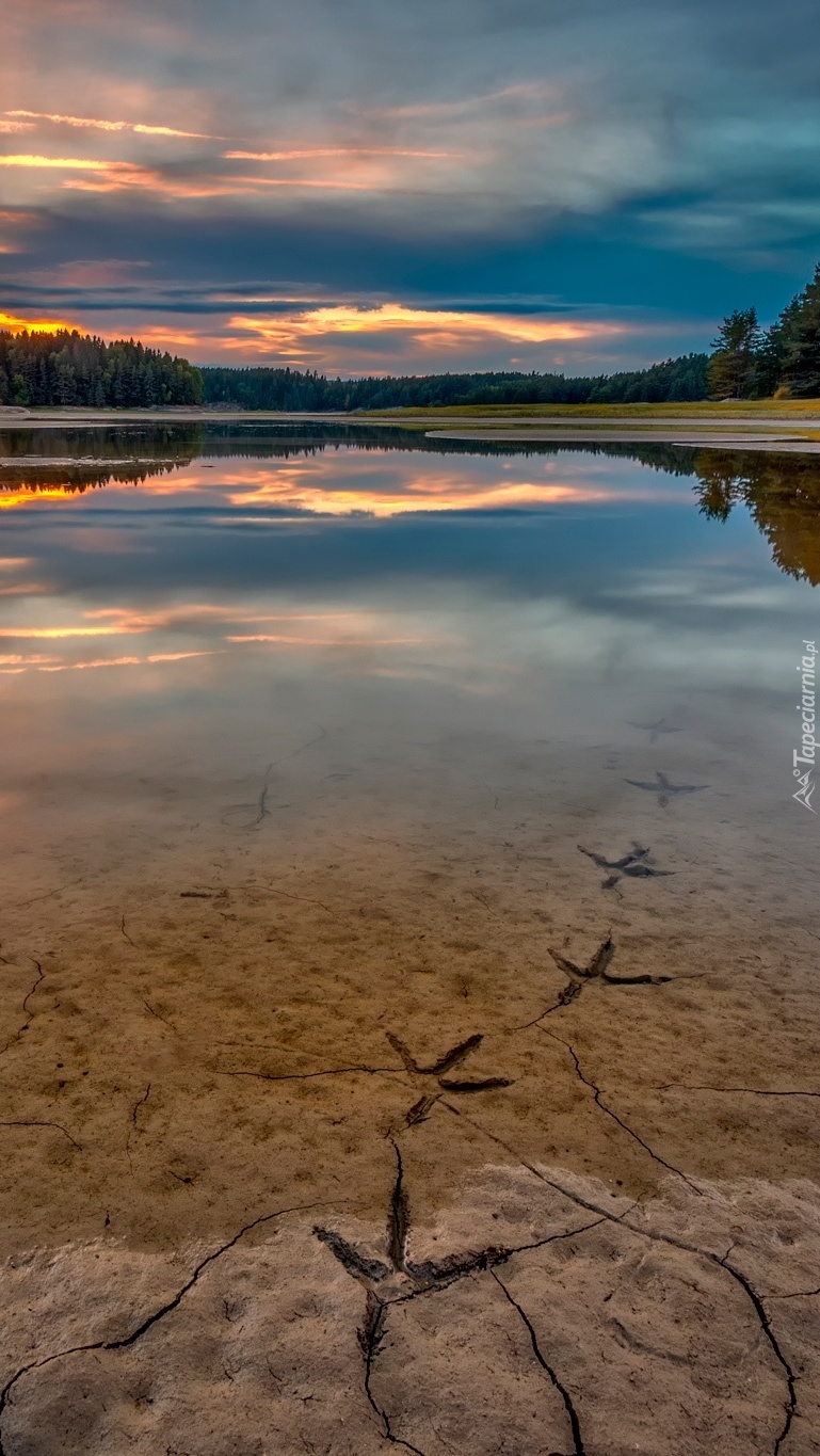 Edytor tapety: Zachmurzone niebo odbija się w jeziorze