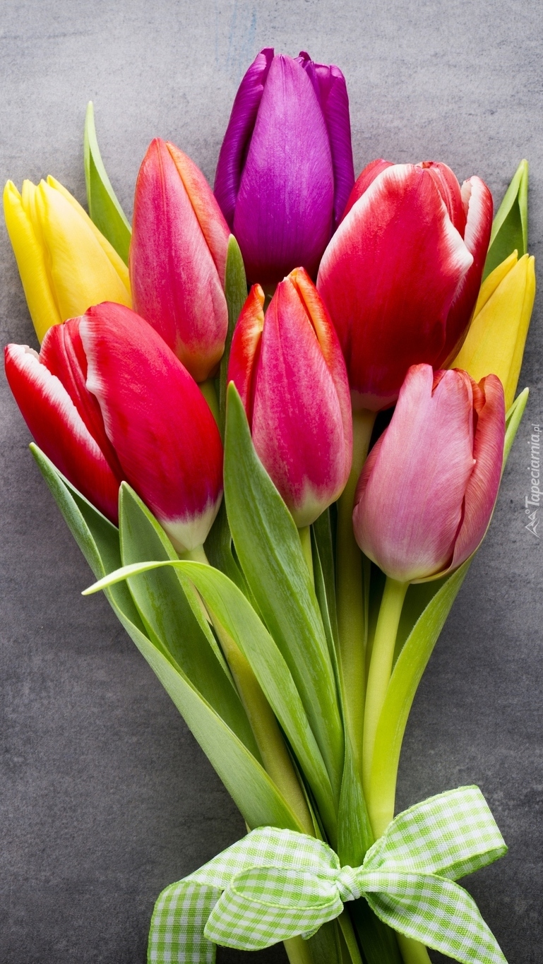 Edytor tapety: Kolorowe tulipany w bukiecie