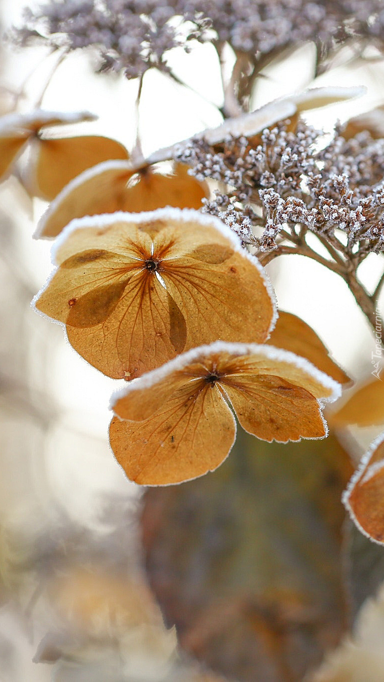 Edytor tapety: Hortensja ozdobiona śniegiem