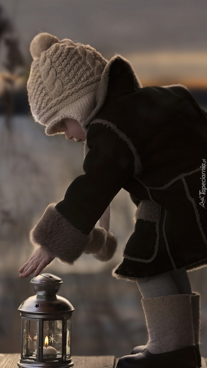 Edytor tapety: Dziecko przy zapalonym lampionie