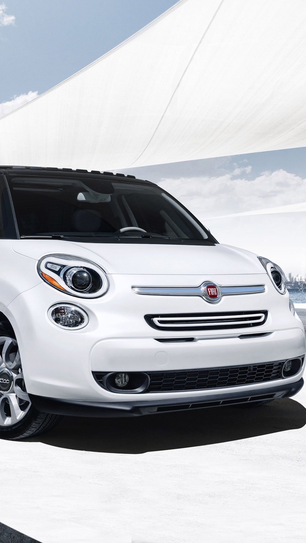 Edytor tapety: Przód białego Fiata 500L Lounge