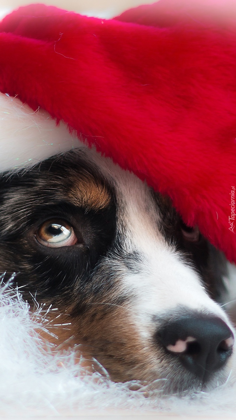 Edytor tapety: Mordka owczarka w czapce Mikołaja