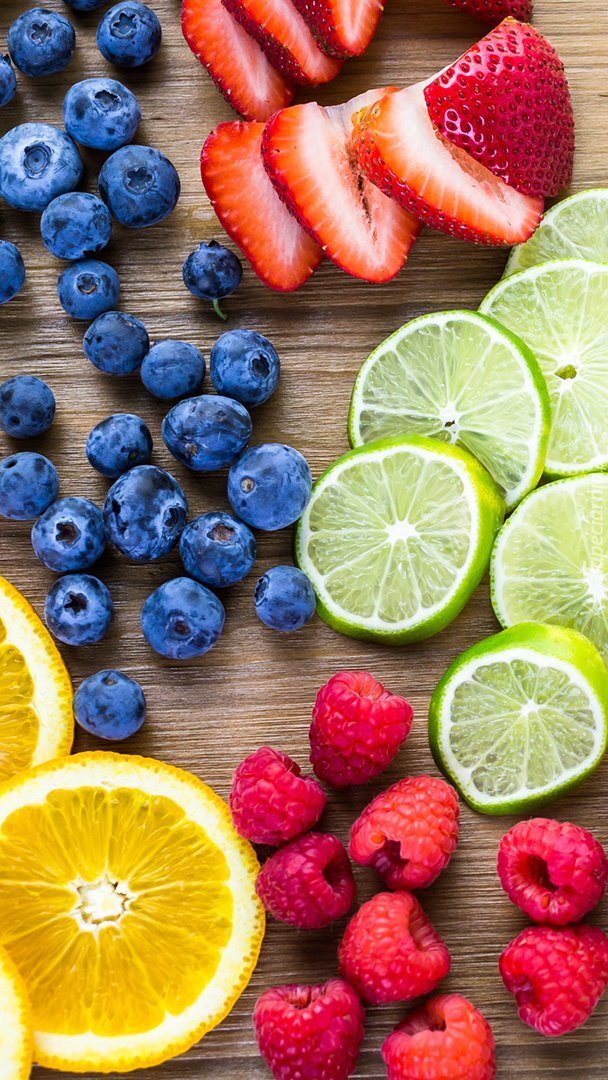 Edytor tapety: Owoce ułożone na deskach