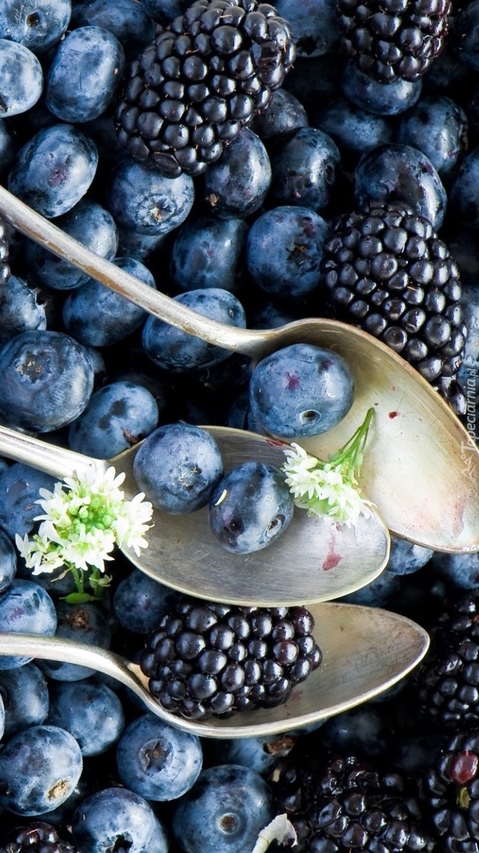 Edytor tapety: Łyżeczki z jagodami i jeżynami