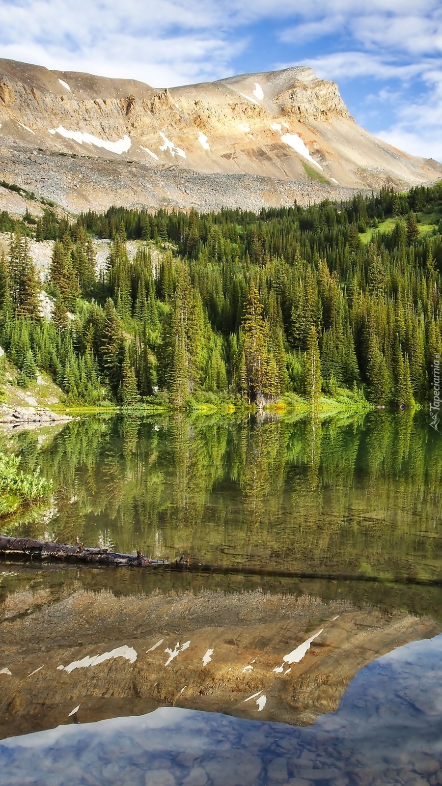 Edytor tapety: Las odbity w górskim jeziorze