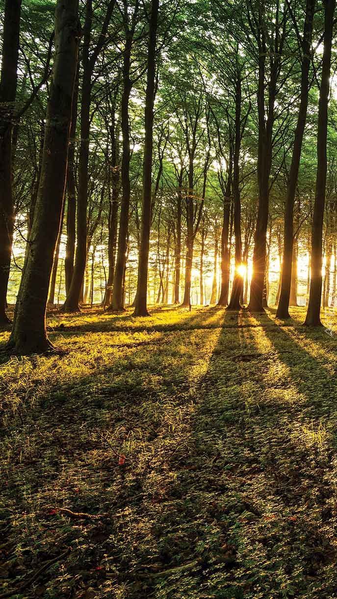 Edytor tapety: Promienie słońca między drzewami