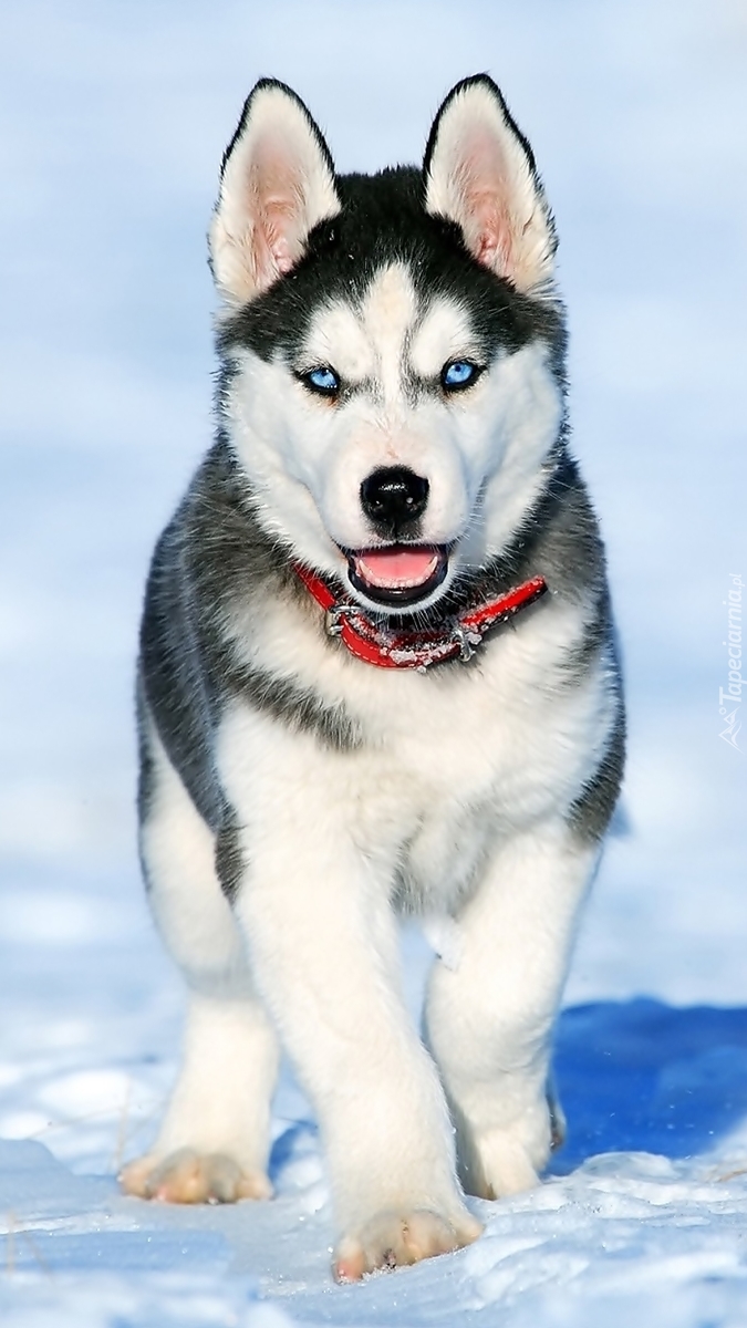 Edytor tapety: Siberian husky wędrujący po śniegu