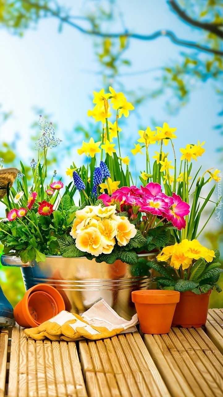 Edytor tapety: Wiosenne kwiaty w donicach