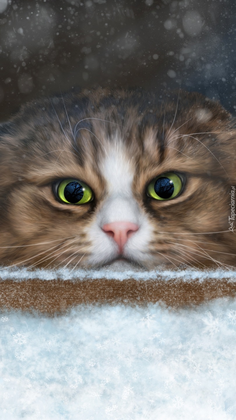 Edytor tapety: Kot ogląda zimę przez okno