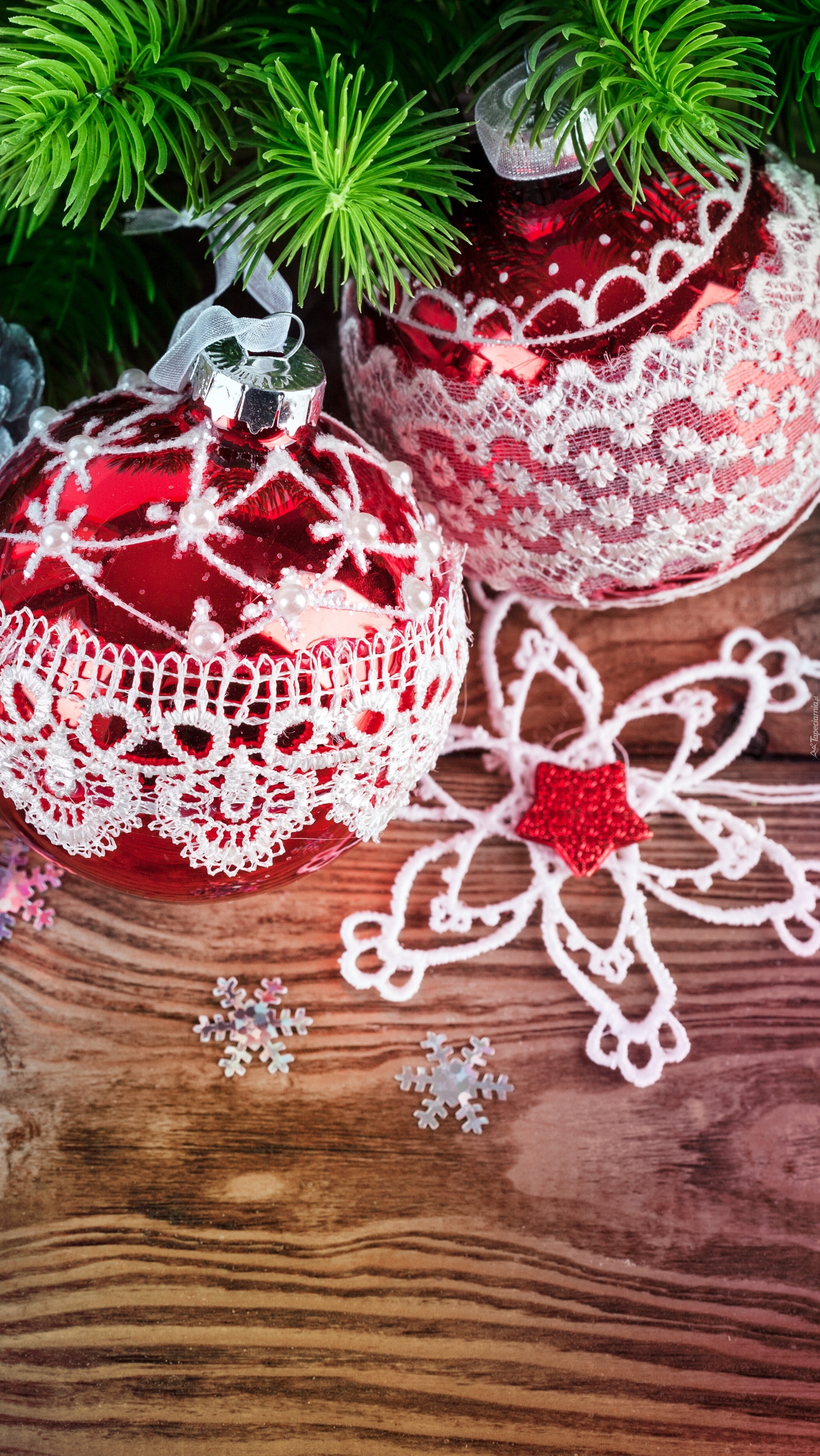 Edytor tapety: Czerwone bombki z białymi wzorami