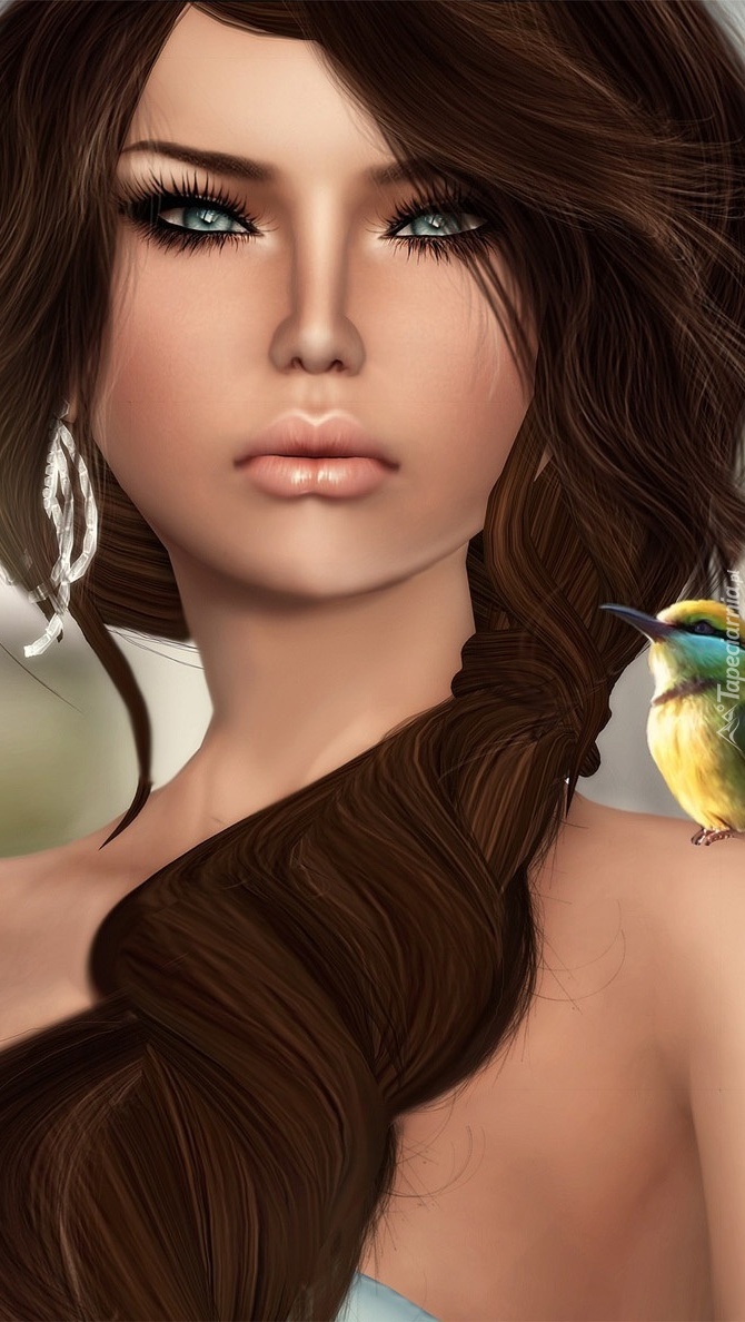 Edytor tapety: Brązowowłosa dziewczyna z żołną