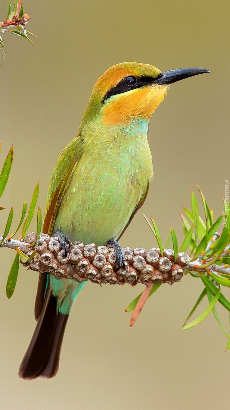 Edytor tapety: Zapatrzona żołna na gałęzi