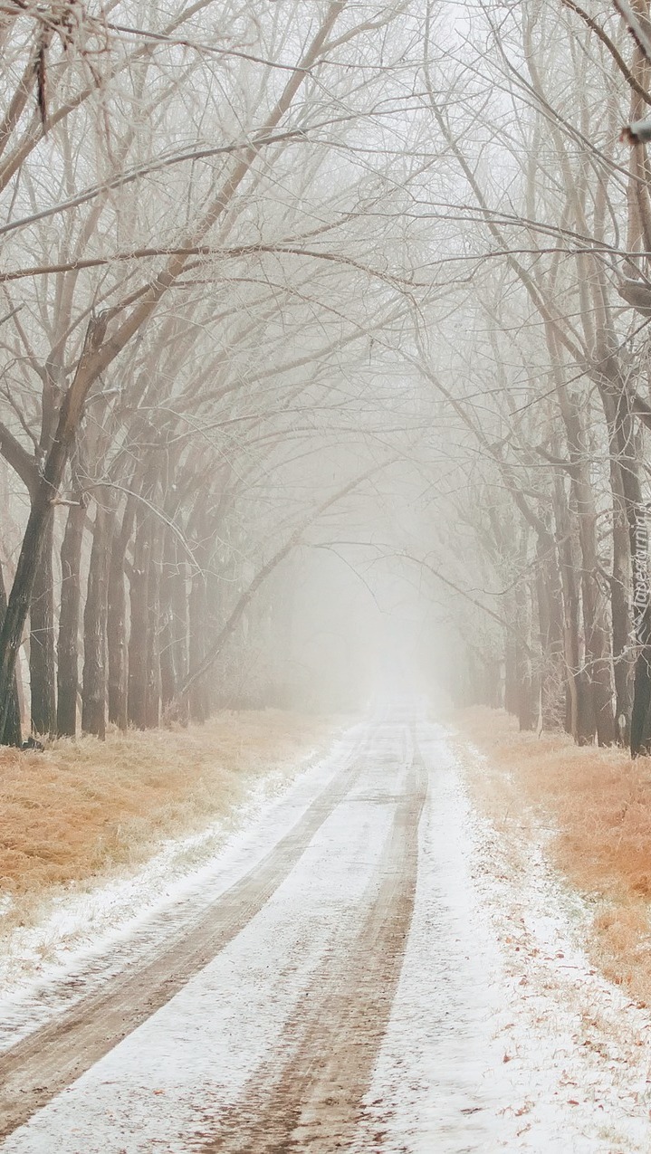 Edytor tapety: Zamglona droga zimą