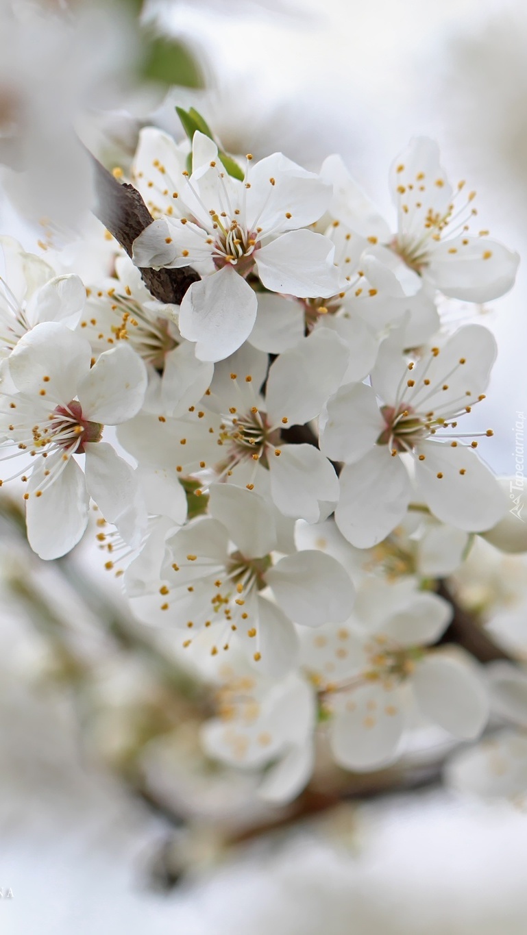 Edytor tapety: Białe kwiaty drzewa owocowego