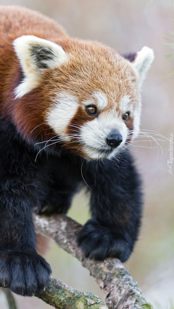 Edytor tapety: Panda czerwona na gałęzi