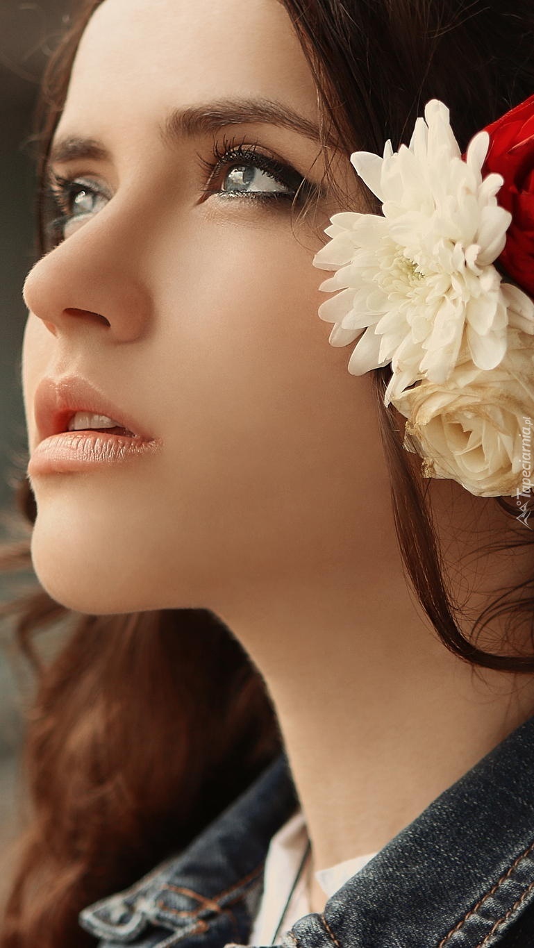 Edytor tapety: Kobieta z kwiatami we włosach