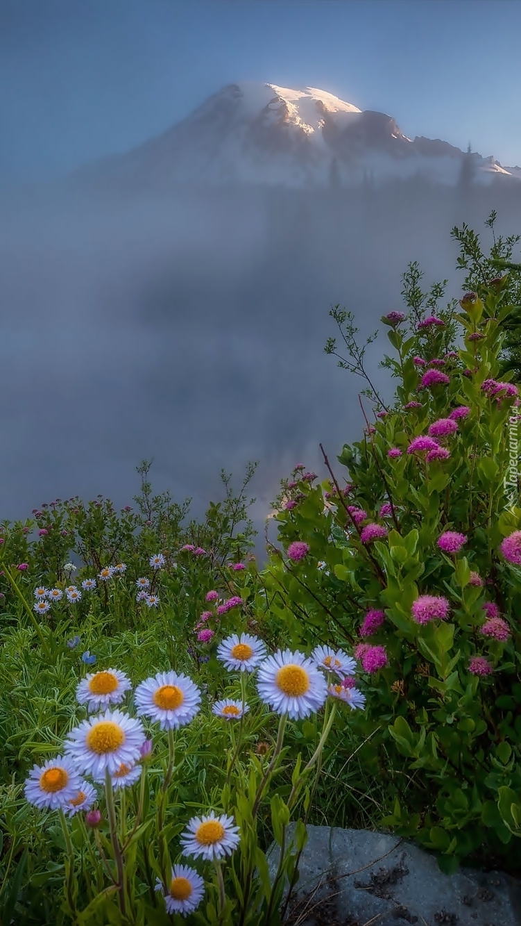 Edytor tapety: Szczyt Mount Rainier we mgle