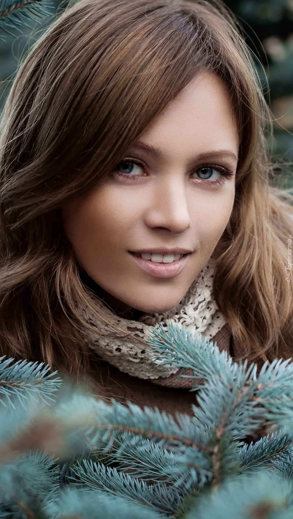 Edytor tapety: Kobieta przy świerkowej gałązce