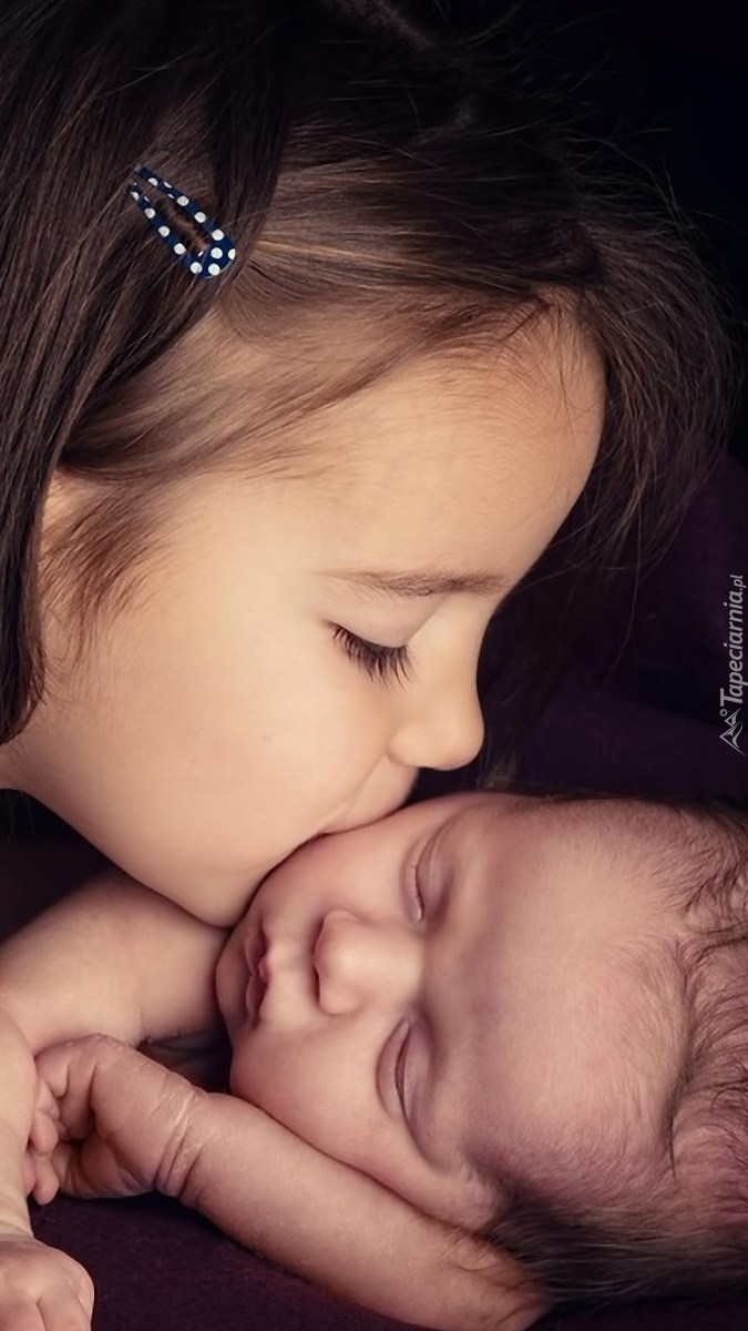 Edytor tapety: Dziewczynka całuje śpiące dziecko