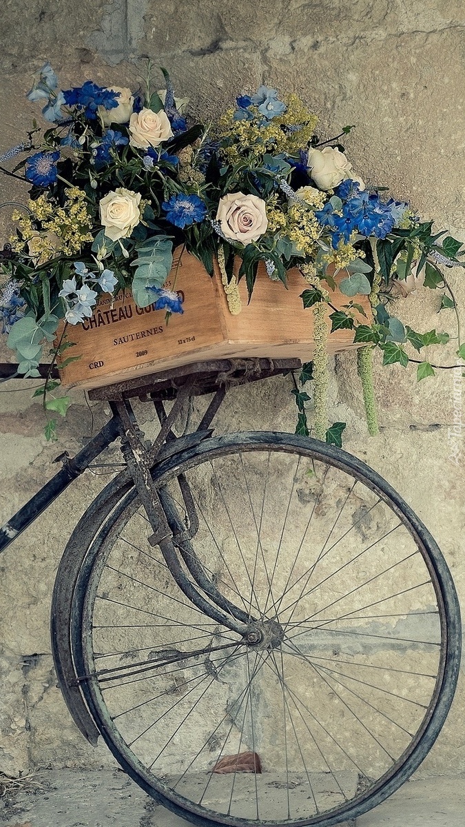 Edytor tapety: Skrzynka kwiatów na rowerze pod murem