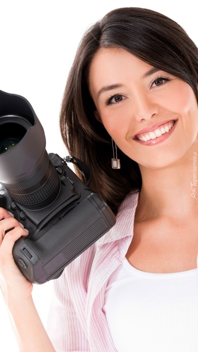 Edytor tapety: Uśmiechnięta kobieta z aparatem