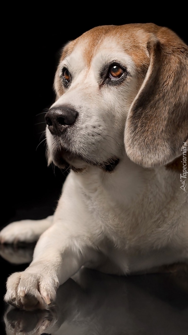 Edytor tapety: Szczeniak beagle na ciemnym tle