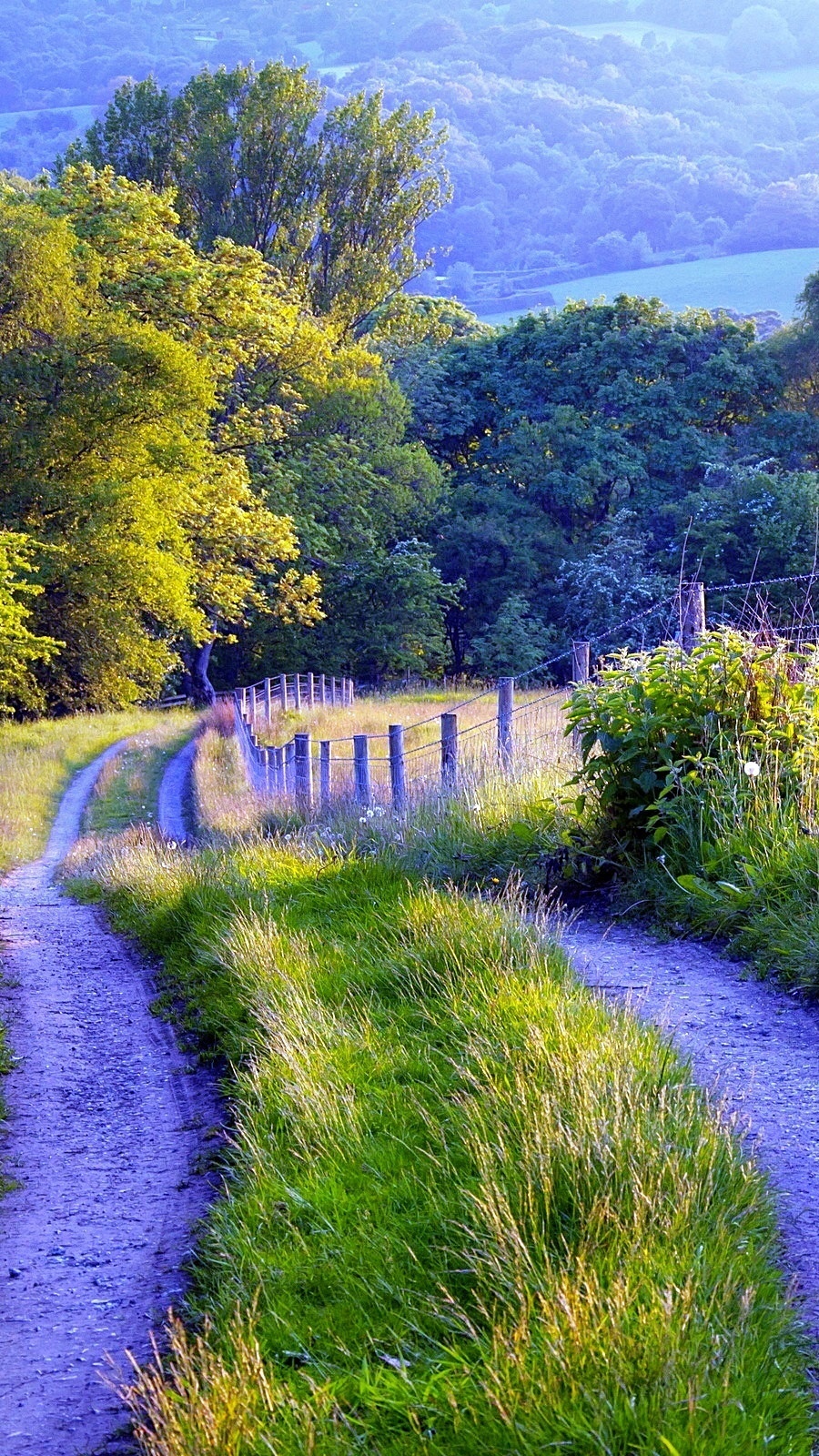 Edytor tapety: Polna droga wzdłuż ogrodzenia
