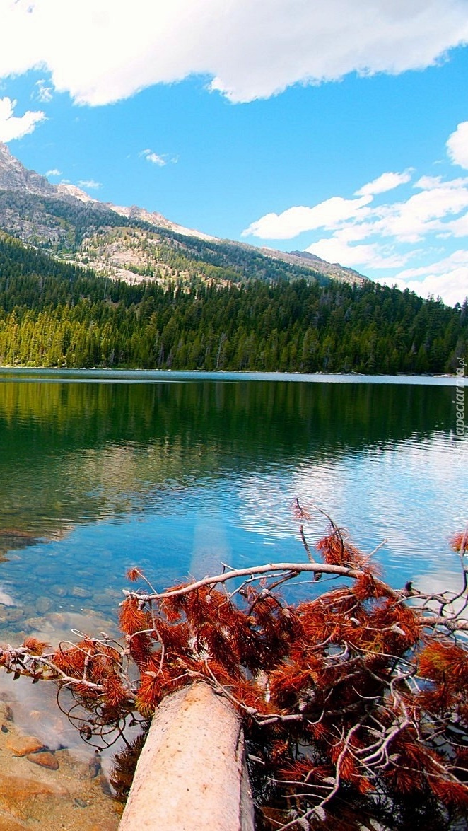 Edytor tapety: Górskie lasy odbite w jeziorze