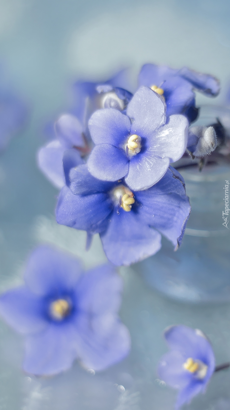 Edytor tapety: Fiołki afrykańskie na rozmytym tle