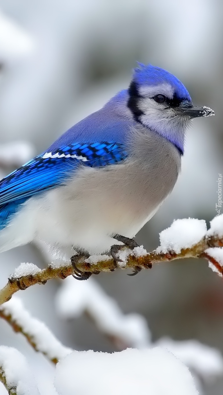 Edytor tapety: Modrosójka na ośnieżonej gałązce