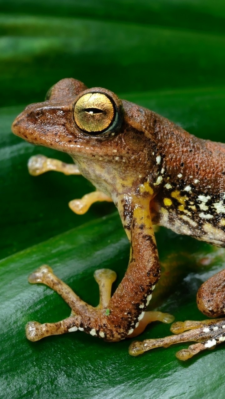 Edytor tapety: Żaba na zielonym liściu