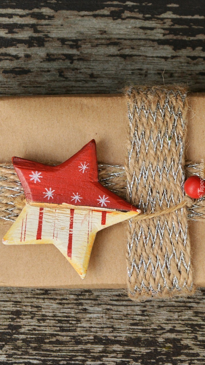 Edytor tapety: Drewniana gwiazdka jako dekoracja prezentu