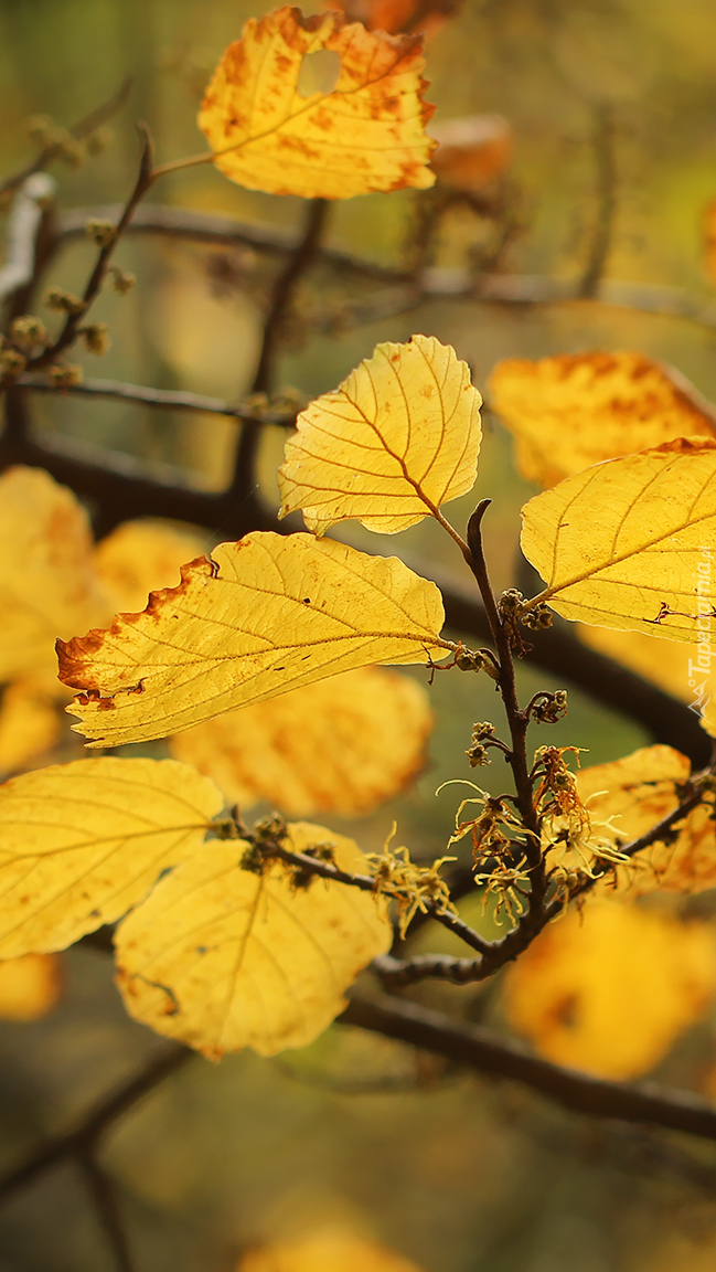 Edytor tapety: Żółte jesienne liście na gałązce