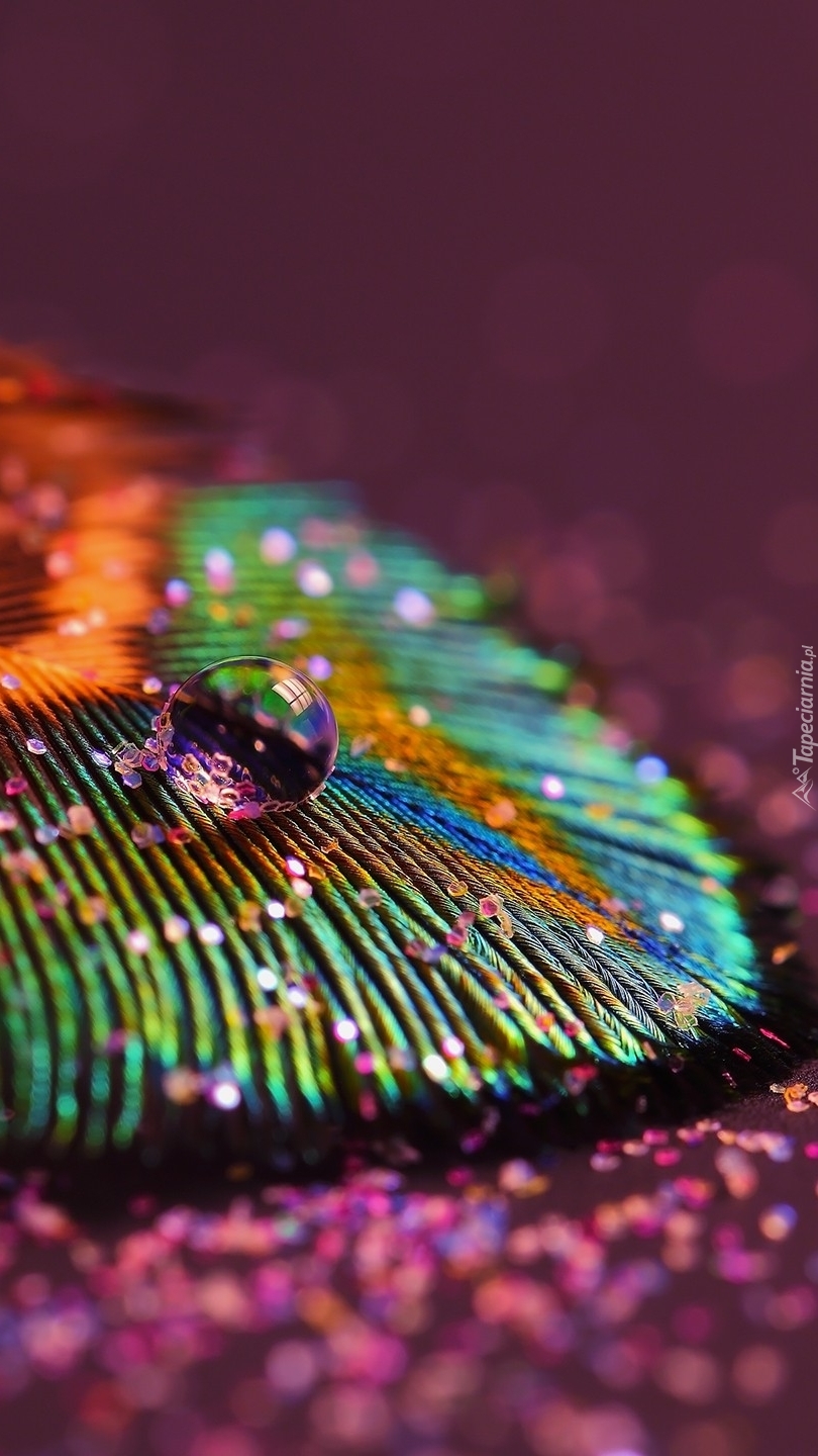 Edytor tapety: Kropla wody na pawim piórku