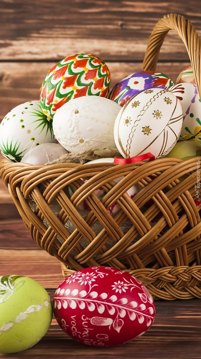 Edytor tapety: Wiklinowy koszyk z pisankami